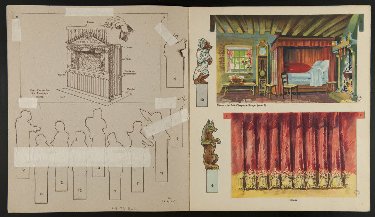 - Scènes : personnage, décor, forêt, rideau, chambre, rue, Guignol