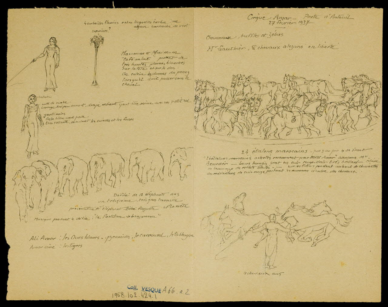 partie d'un ensemble de dessins, Cirque Amar - Porte d'Auteuil 27 février 1937