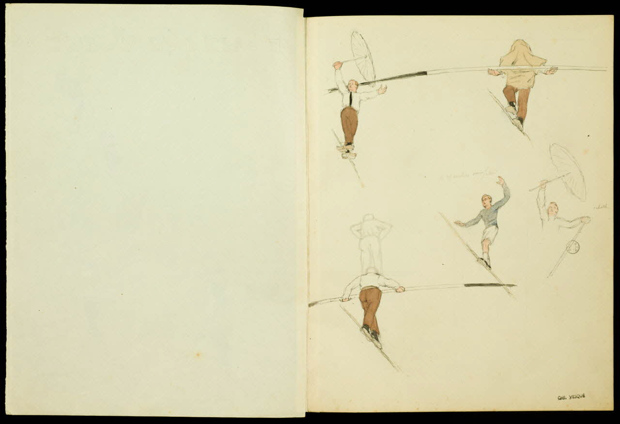 - Suite de scènes : acrobatie, homme, femme, bicyclette, corde, barre, équilibre