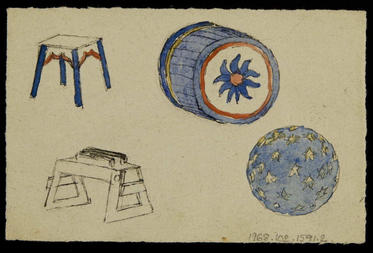 - Revers : représentation d'objet : tabouret, tonneau, banc, balle