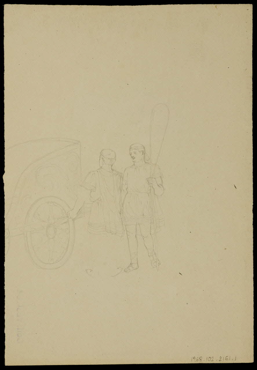 partie d'un ensemble de dessins, Artistes de cirque transportant une table surmontée de deux chaises