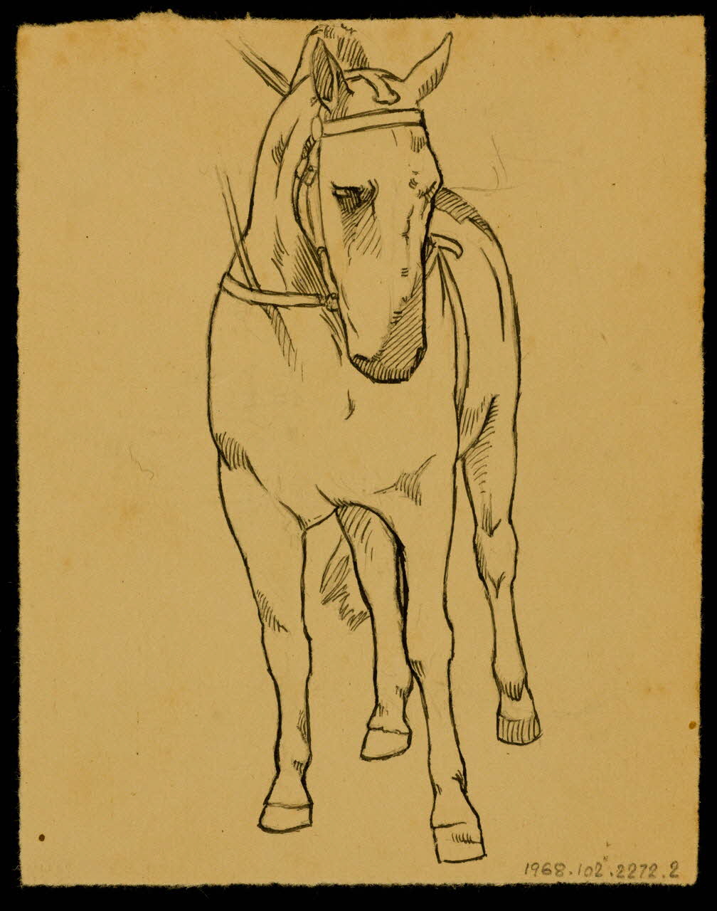 partie d'un ensemble de dessins, Cyclistes, Cheval