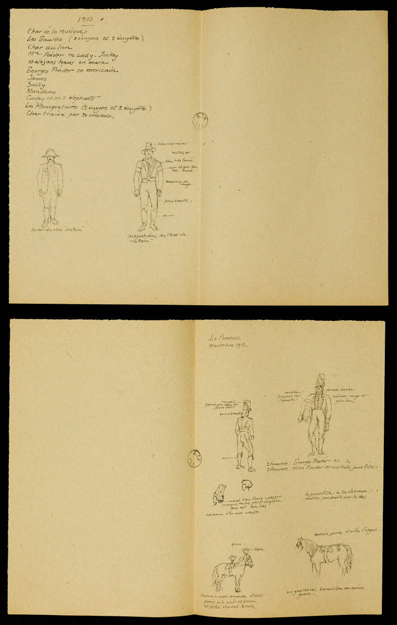 partie d'un ensemble de dessins, Cavalcades du Cirque Pinder