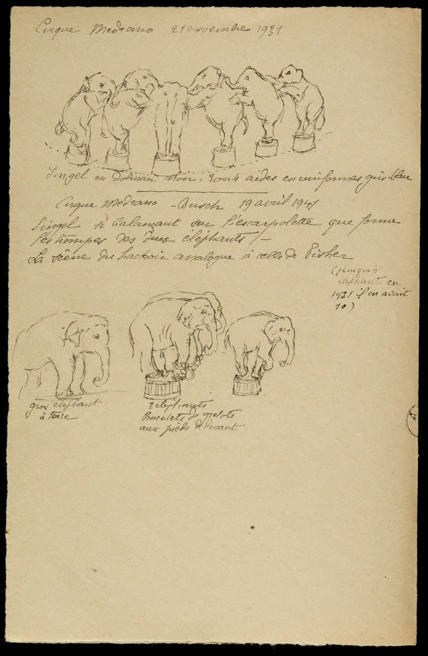 - Suite de scènes : éléphant, dompteur, plot, equilibriste