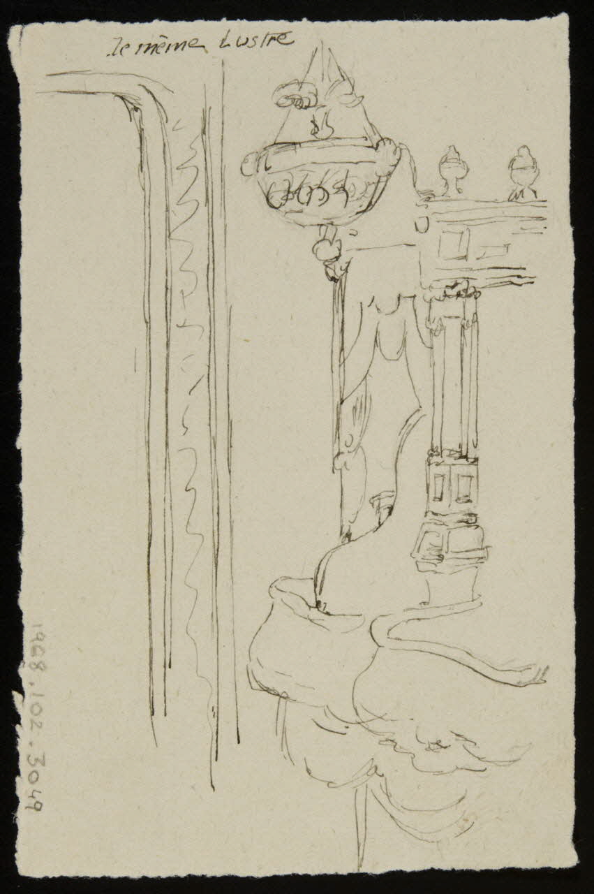 partie d'un ensemble de dessins, Le Lustre de l'Olympia qui a failli être la cause d'un grave accident au jeune Esa, Le même lustre