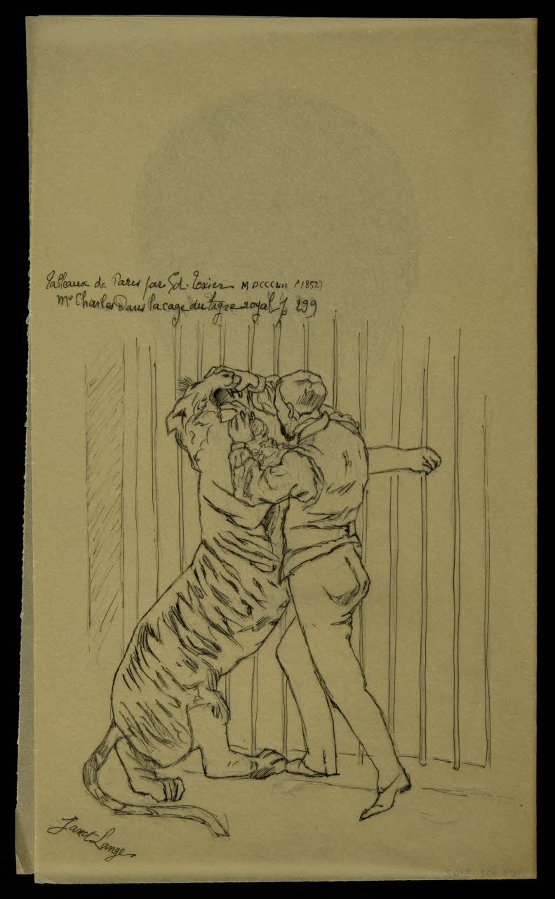 partie d'un ensemble de dessins, Mr Charles dans la cage du tigre royal