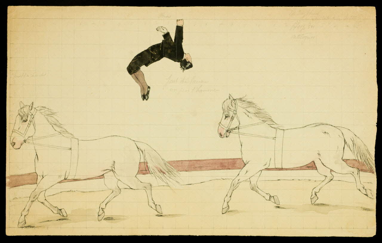 partie d'un ensemble de dessins, Acrobatie à cheval