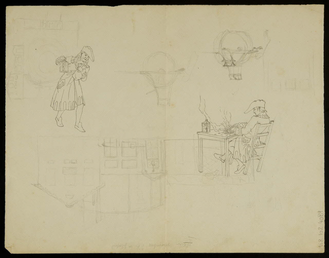 - Revers : scène : homme, assis, de dos, chaise, table, lanterne, flamme, feu