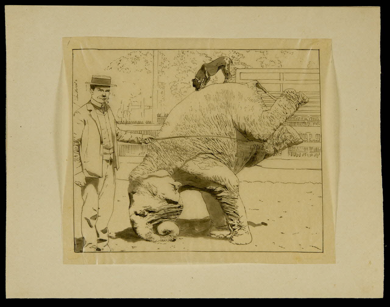 partie d'un ensemble de dessins, Animaux de cirque et leur dresseur