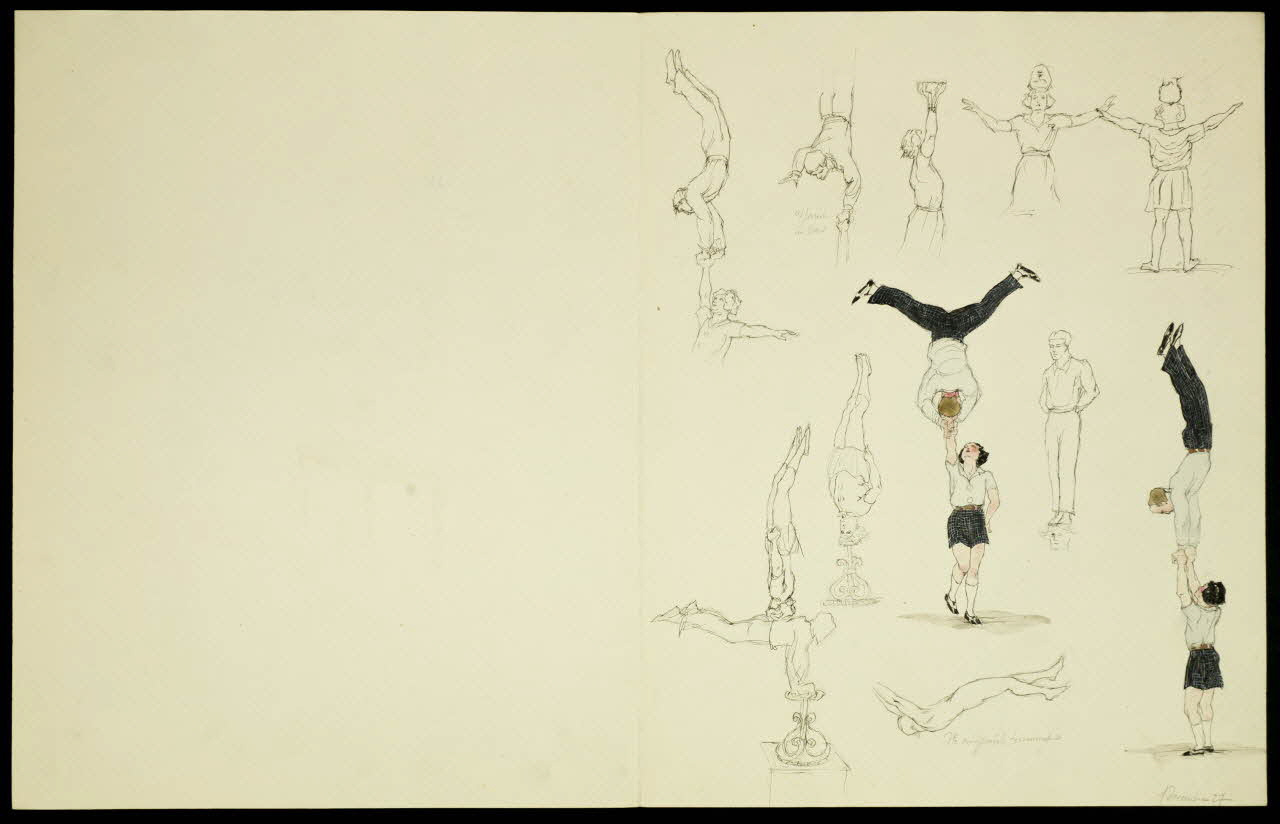 - Scène : acrobate, en pied, de face, femme, en appui, en équilibre, en vol, saut, table, équilibrisme, art du spectacle, cirque