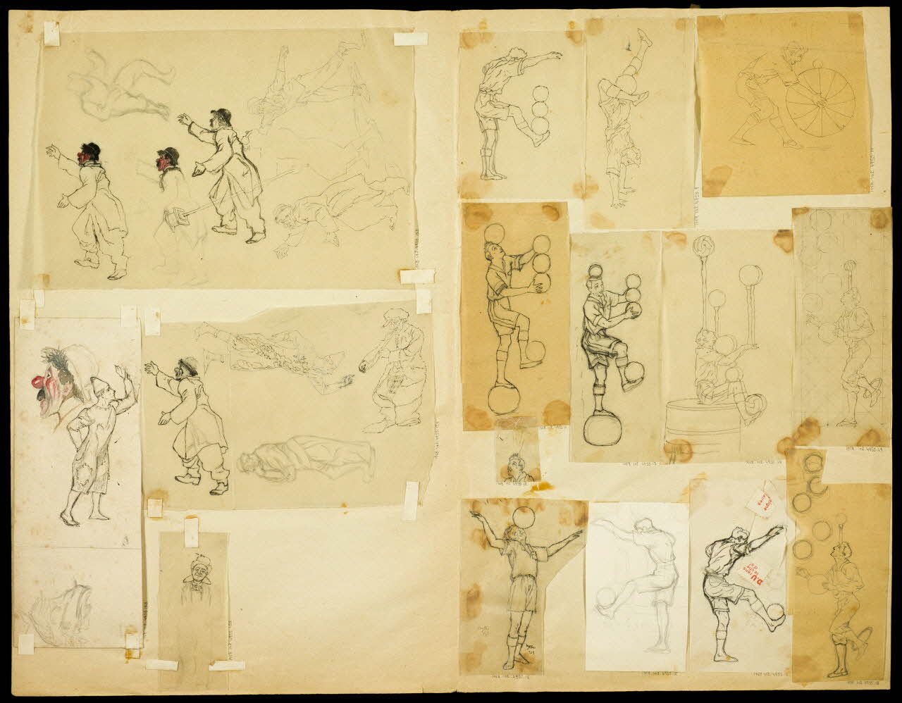 - Figure : homme, jonglerie : pied : cerceau, balle
