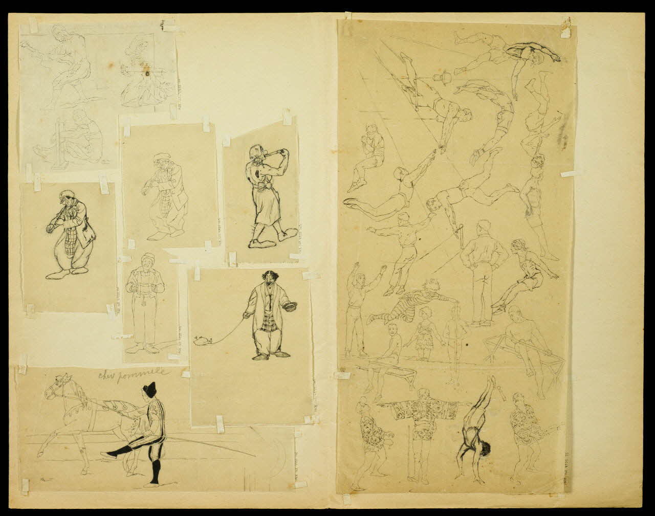 partie d'un ensemble de dessins, Clown musicien