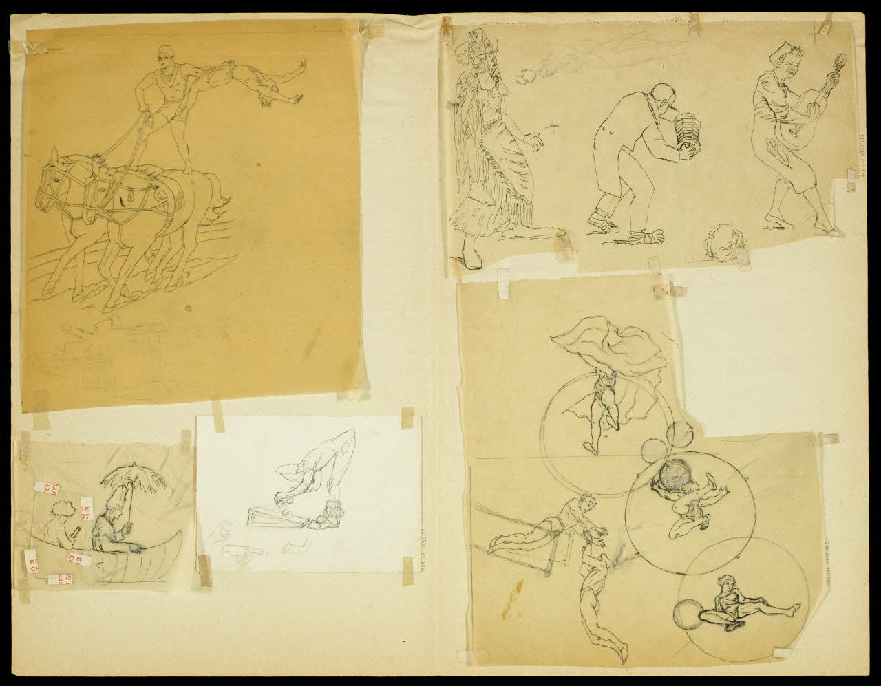 partie d'un ensemble de dessins, Acrobates et trapézistes