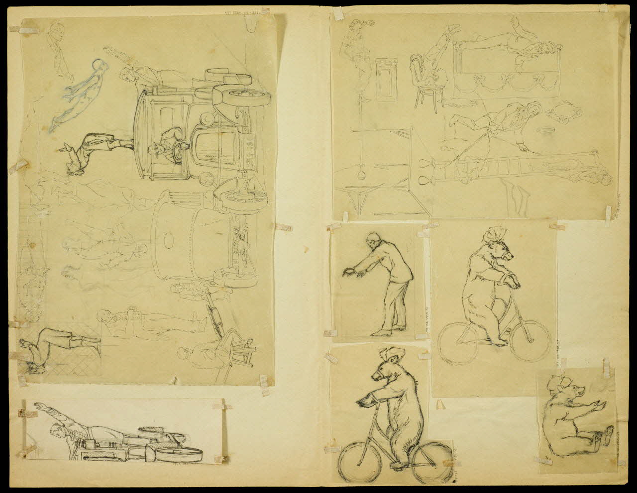 partie d'un ensemble de dessins, Acrobates et automobiles