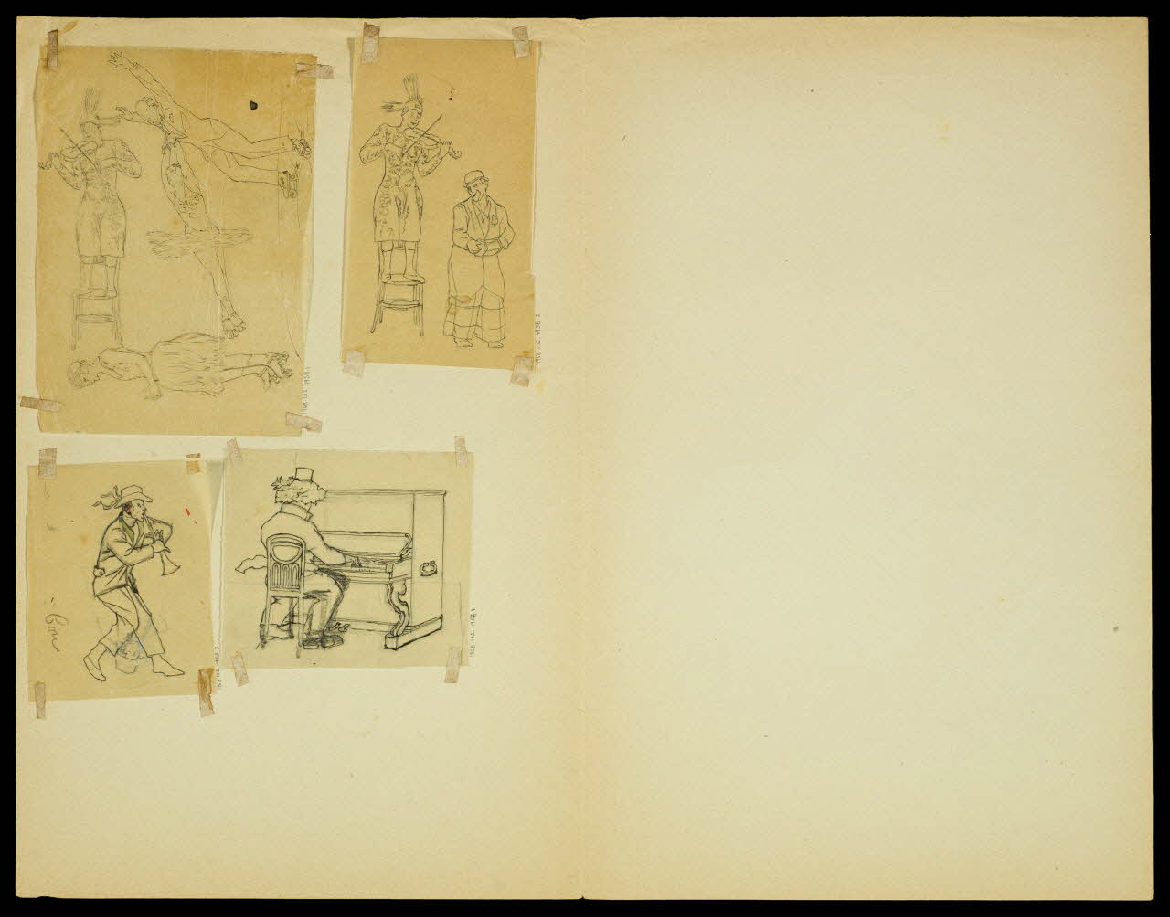 partie d'un ensemble de dessins, Clown jouant de la trompette