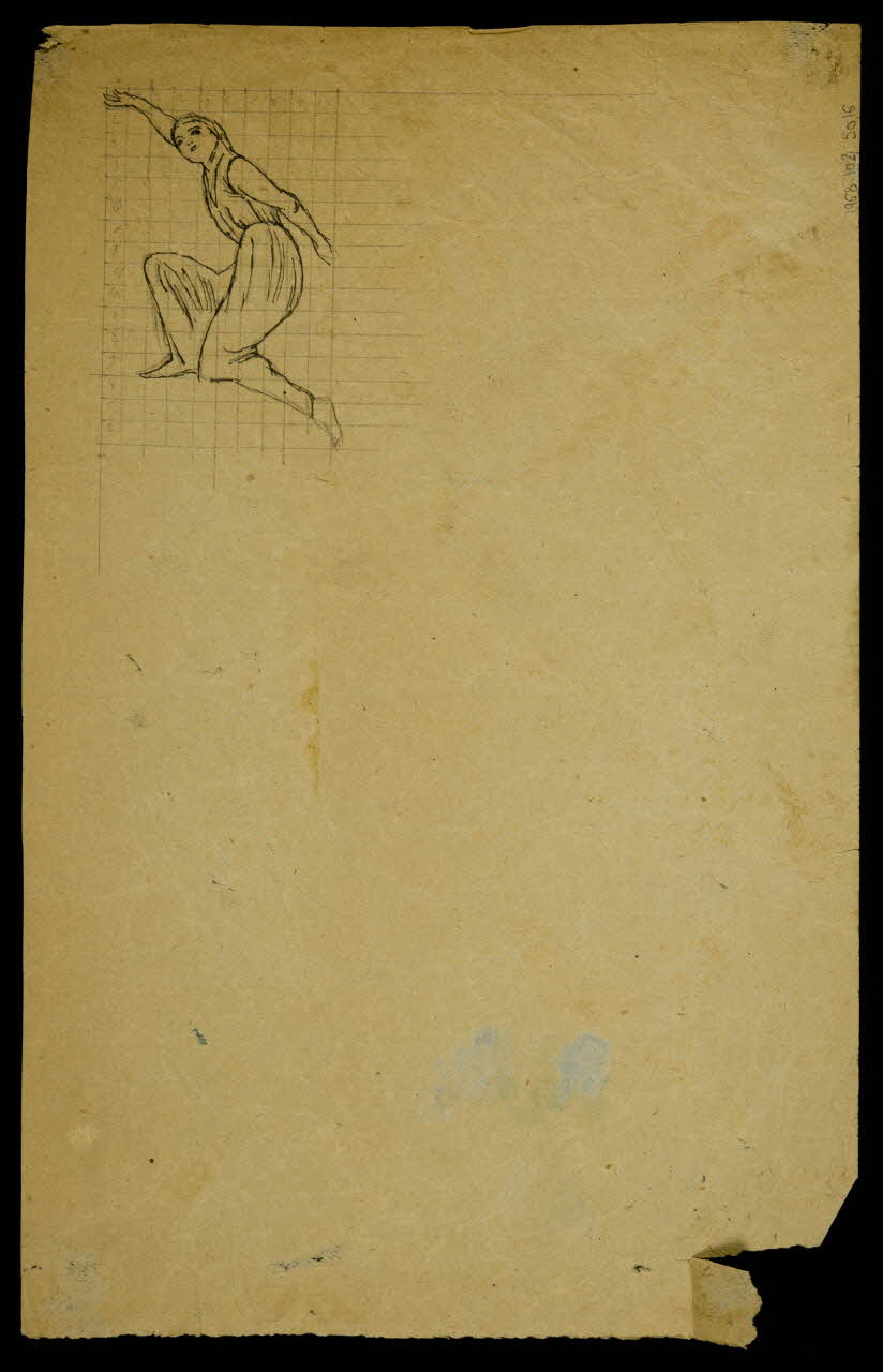 partie d'un ensemble de dessins, Femme retenant son foulard dans le vent