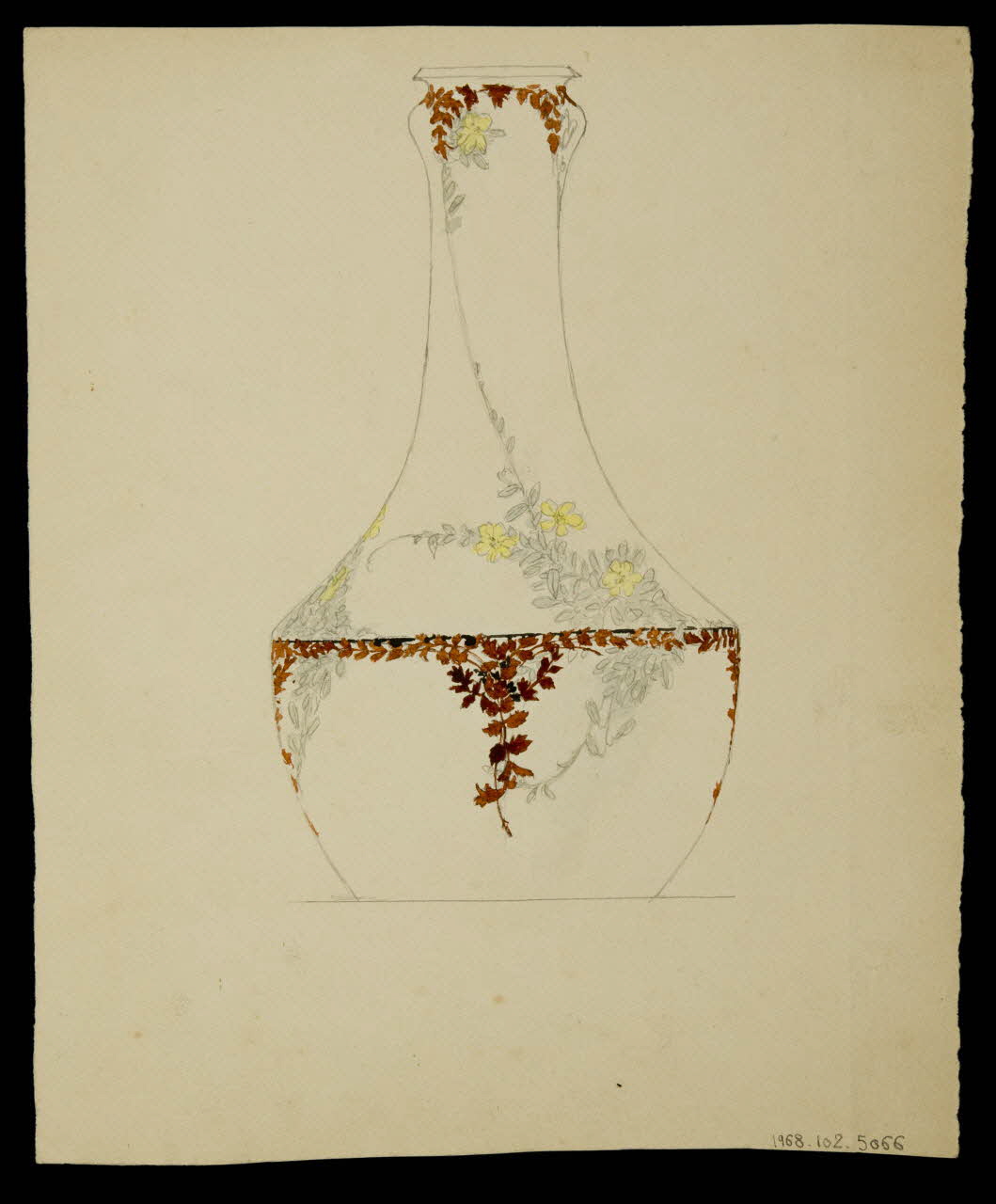 - Représentation d'objet : vase, décor : ornement à forme végétale, feuille, fleur, rinceau, volute