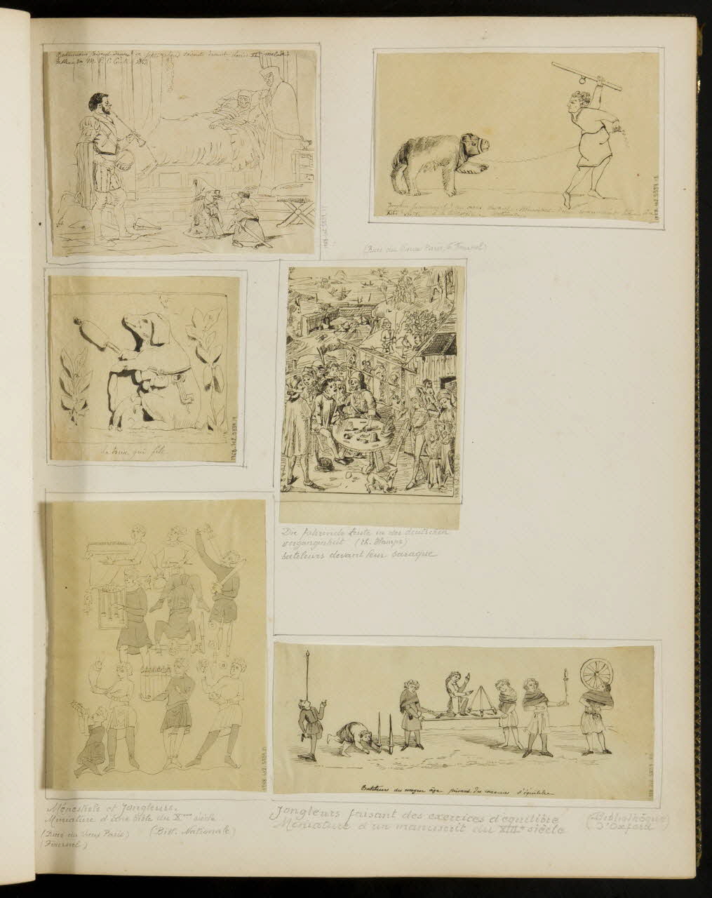 partie d'un ensemble de dessins, bateleurs devant leur baraque