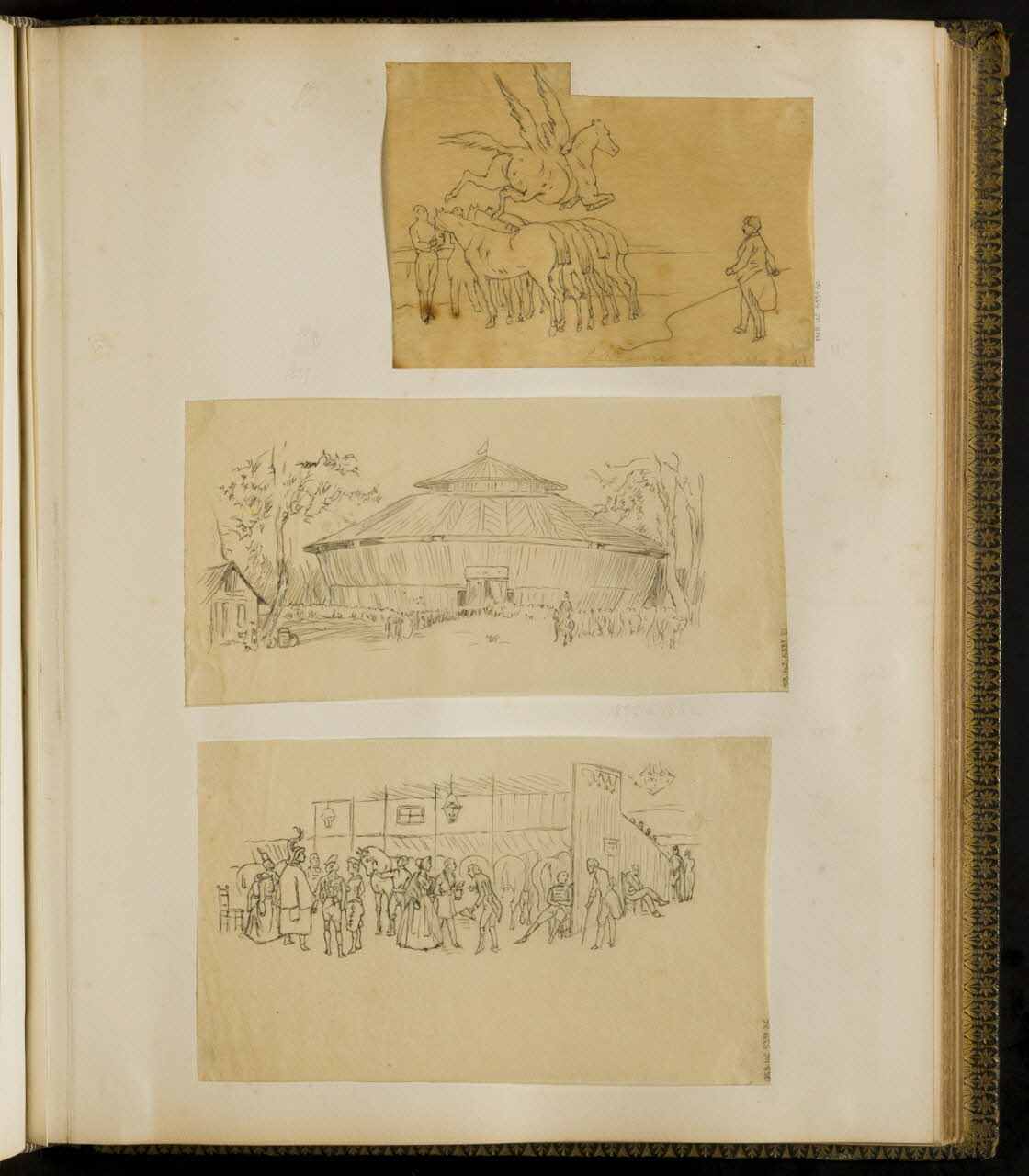 partie d'un ensemble de dessins, Numéro de cirque avec chevaux