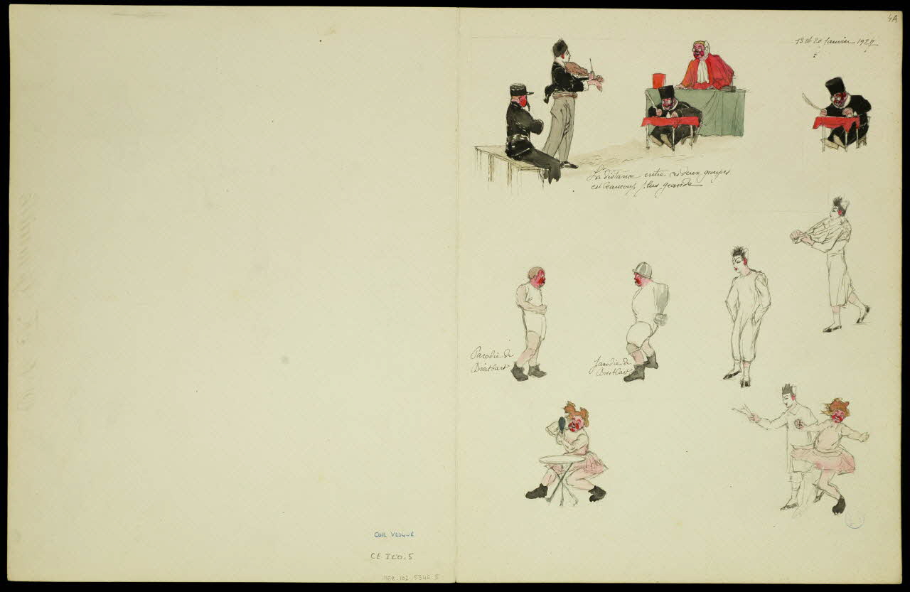 - Revers : scène : homme : artiste : clown, musicien, instrument de musique : violon, maquillage : cirque, costume : pierrot : tribunal : juge