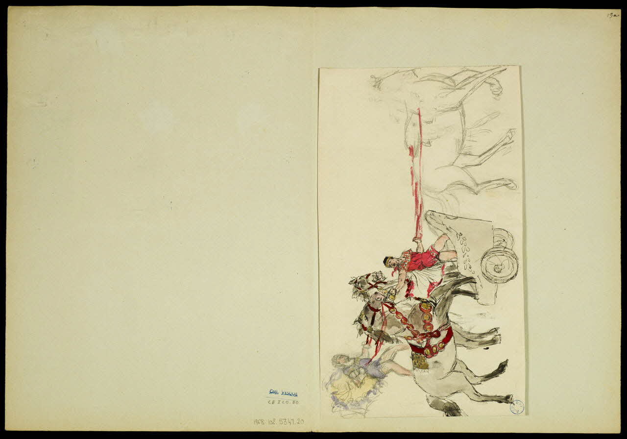 - Revers : scène : cheval, char, homme : costume, acrobatie