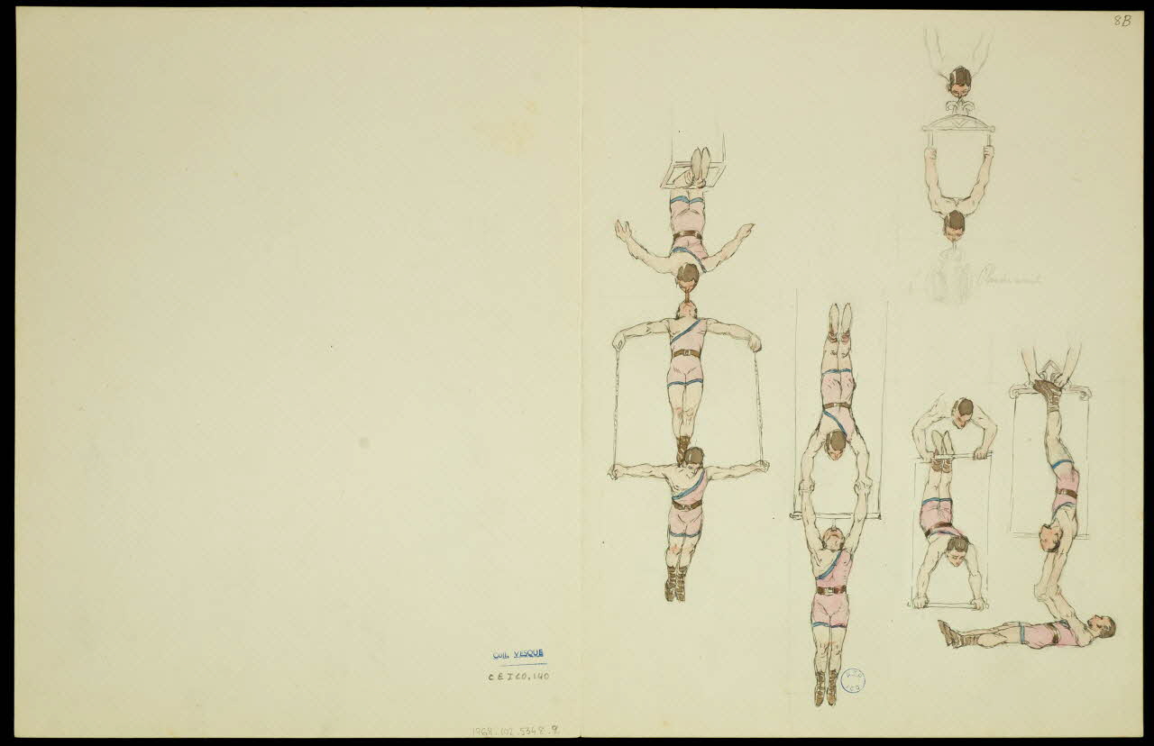partie d'un ensemble de dessins, Groupe d'acrobates et trapézistes
