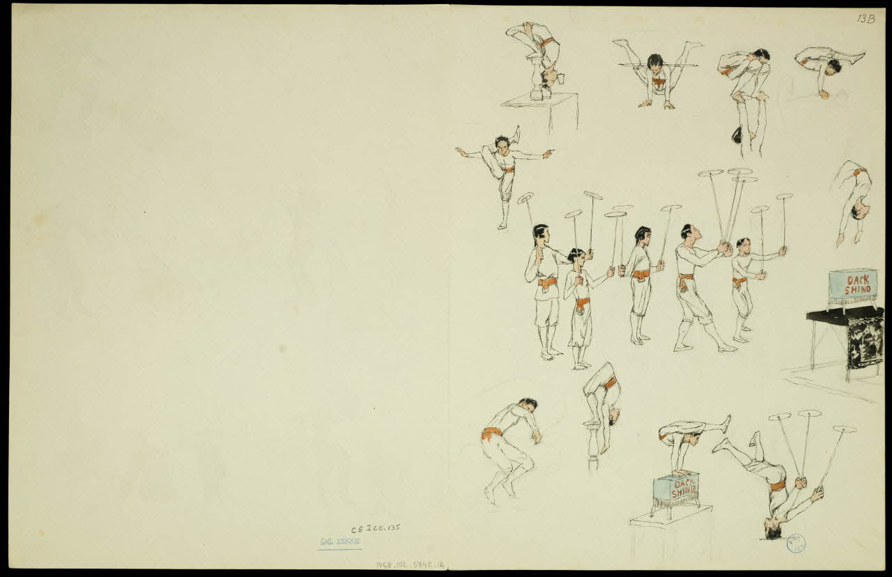 partie d'un ensemble de dessins, Dresseur d'otaries et jongleurs
