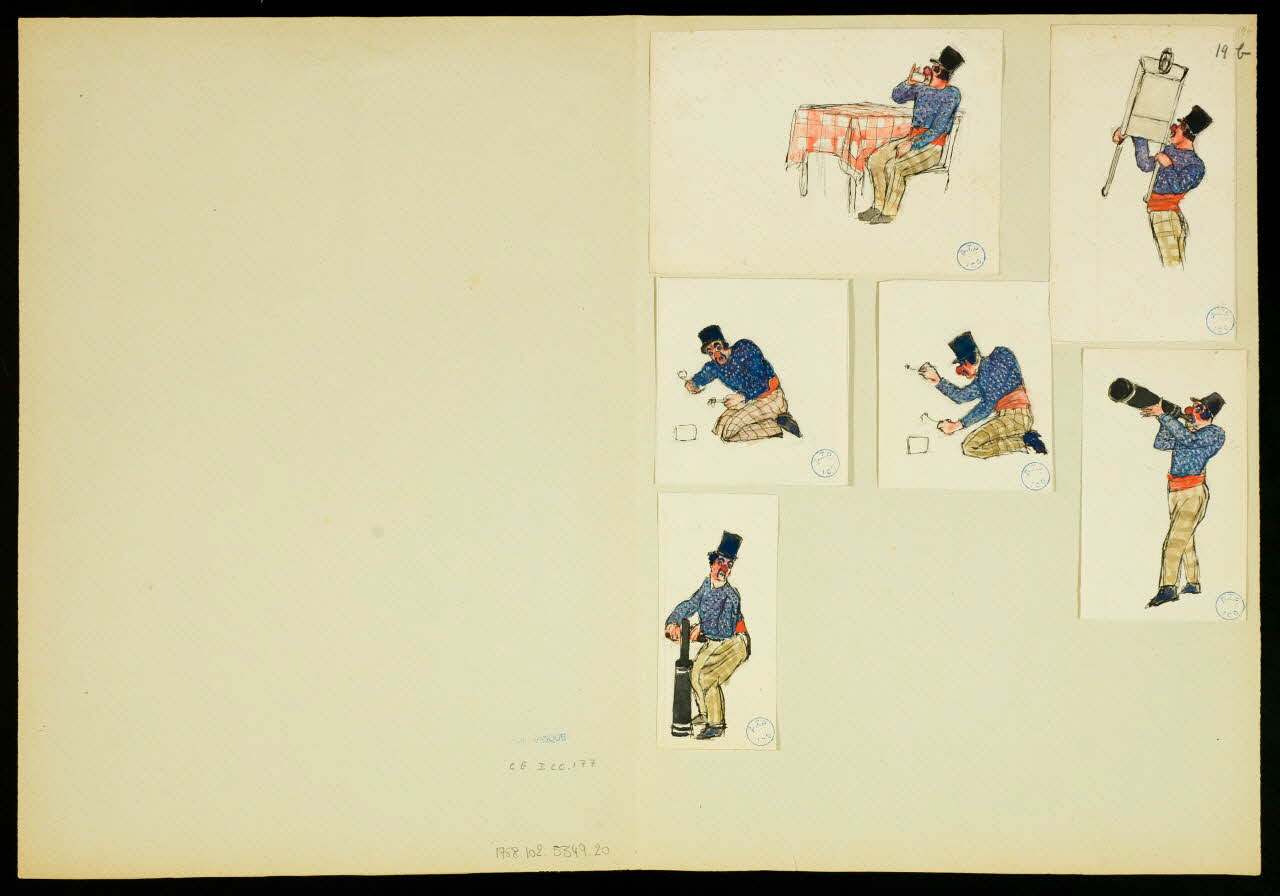partie d'un ensemble de dessins, Numéro de trapéziste et clown