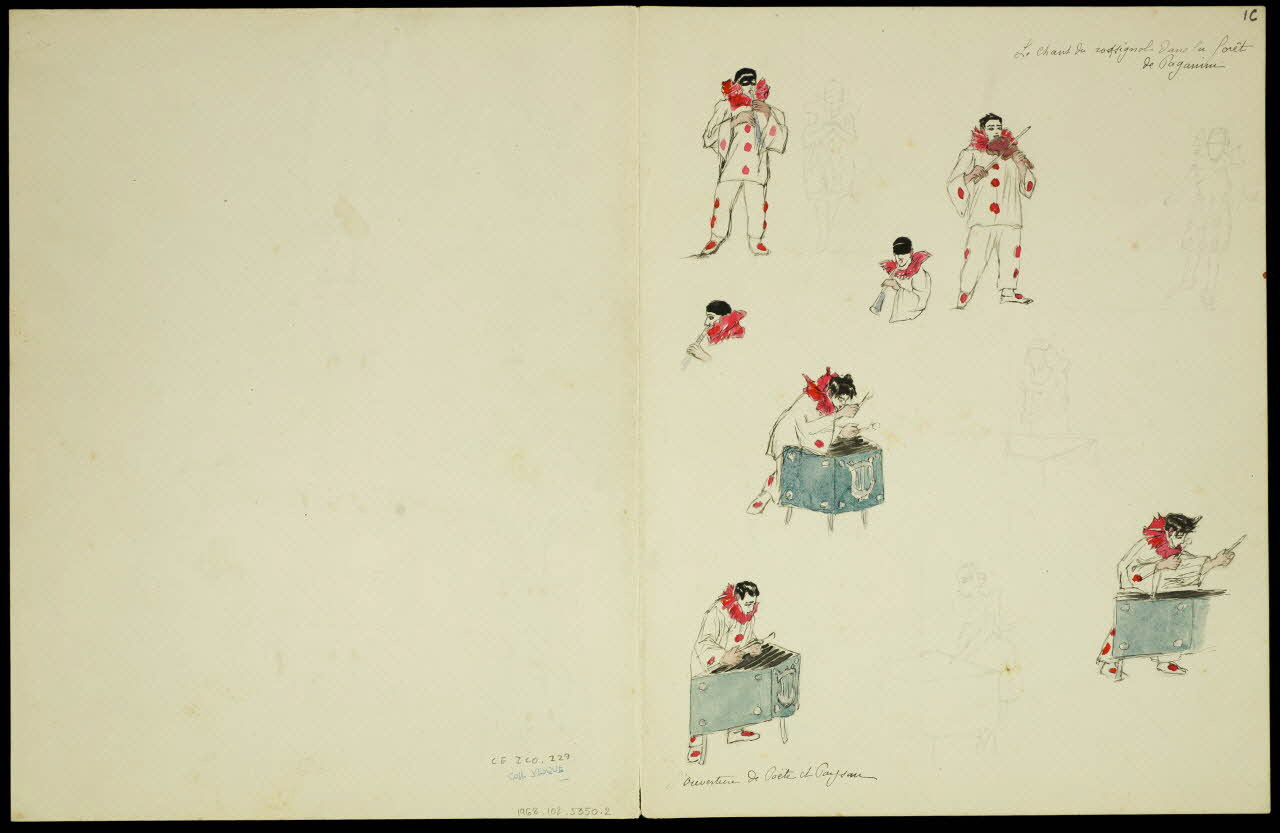 - Revers : scène : clown, costume : pierrot, musicien, instrument de musique : violon, flûte, trompette, membranophone, idiophone, cirque