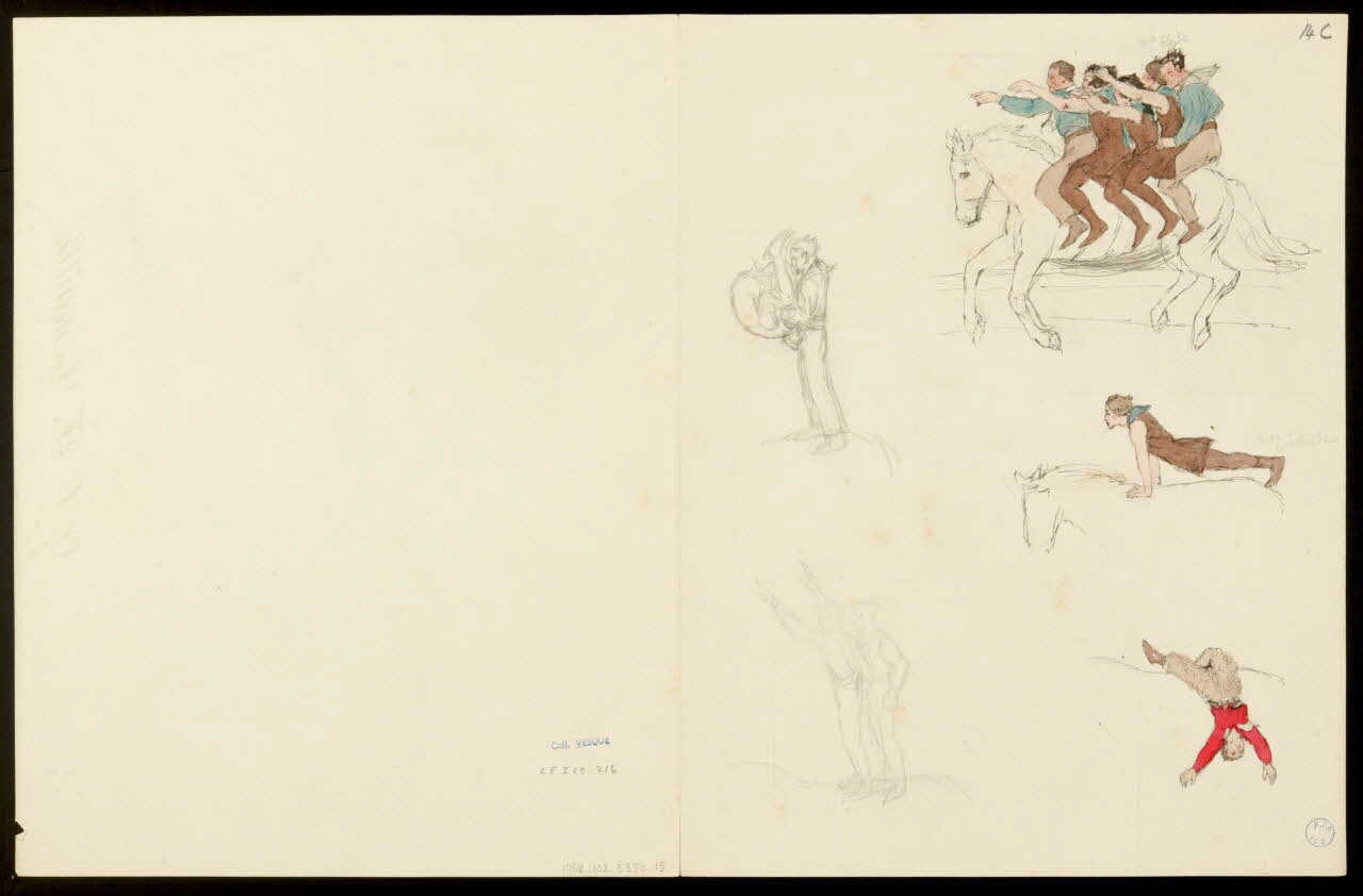 partie d'un ensemble de dessins, Acrobaties à cheval