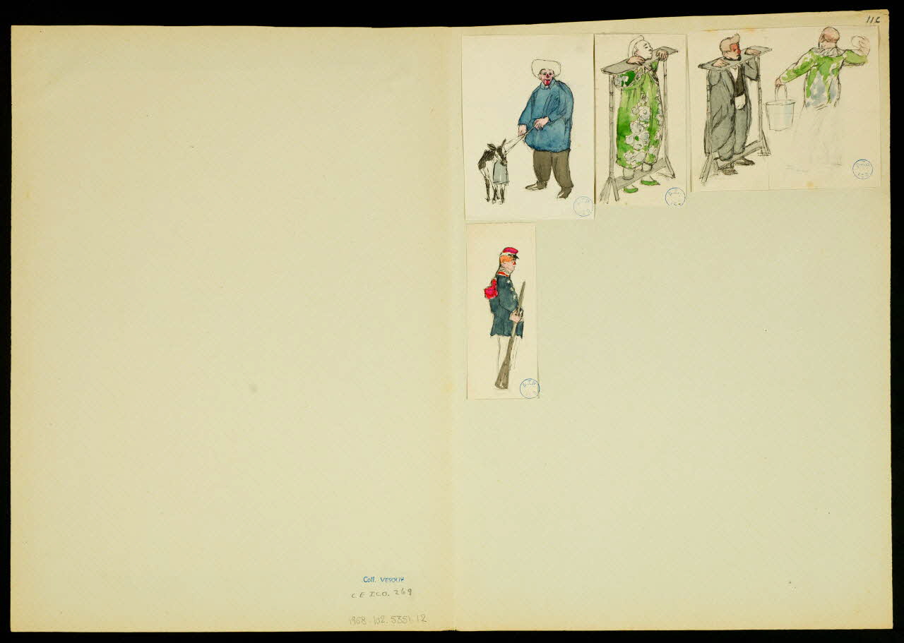 partie d'un ensemble de dessins, Numéros d'acrobates et de clowns