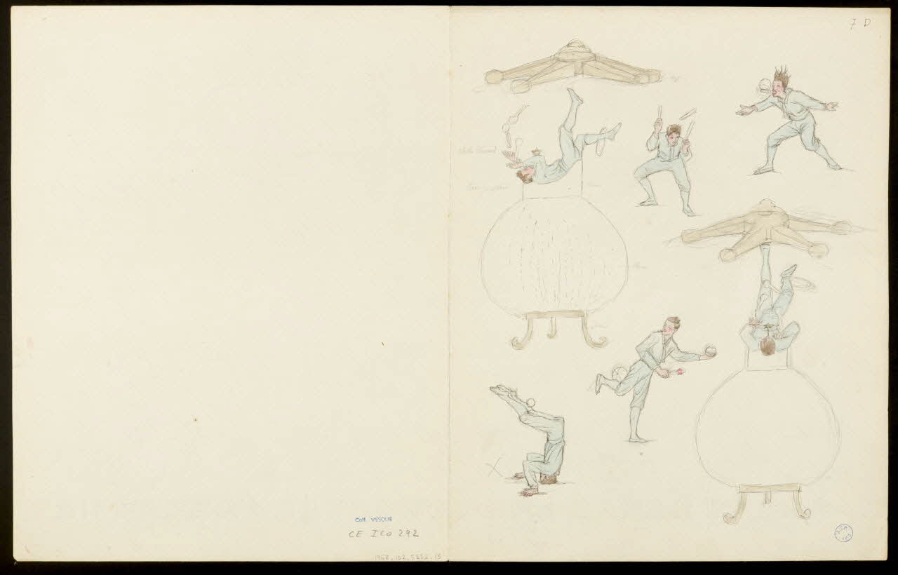 - Figures : homme : acrobatie, bicyclette, saut, instrument de musique : cornemuse, tambour