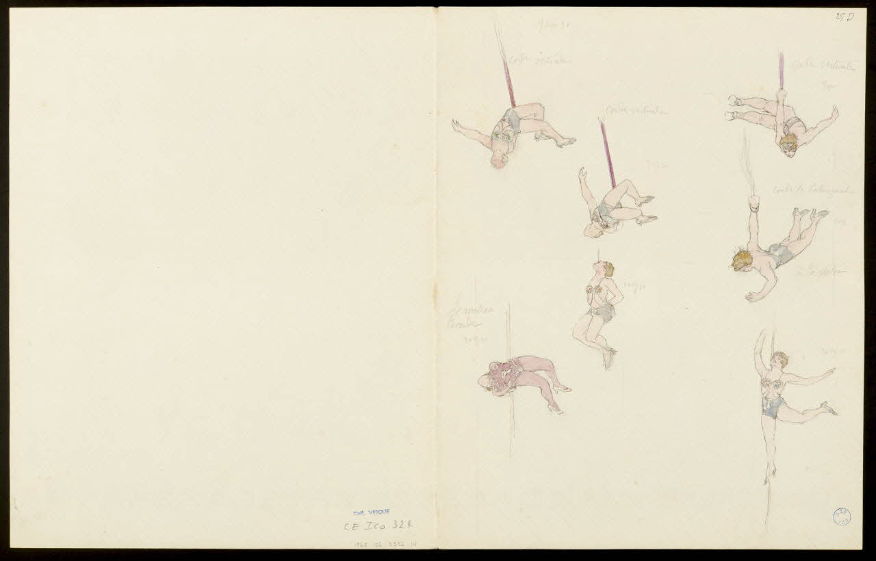 partie d'un ensemble de dessins, Artiste à la corde