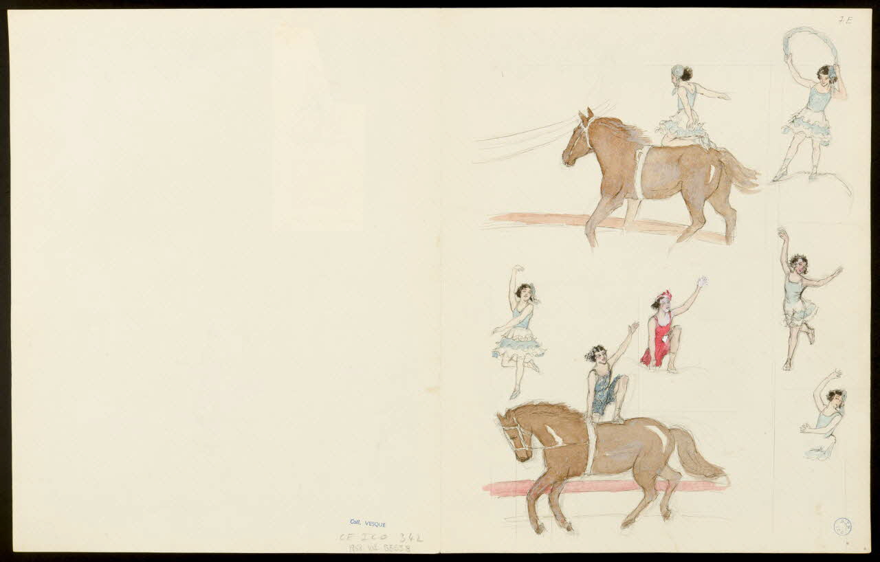 partie d'un ensemble de dessins, Acrobaties à cheval