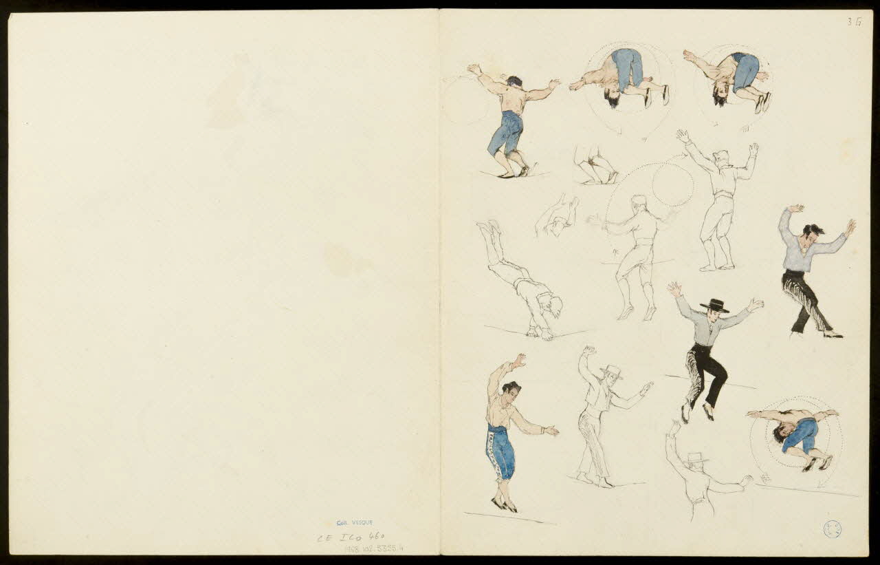 partie d'un ensemble de dessins, Voltige, pianiste et funambules