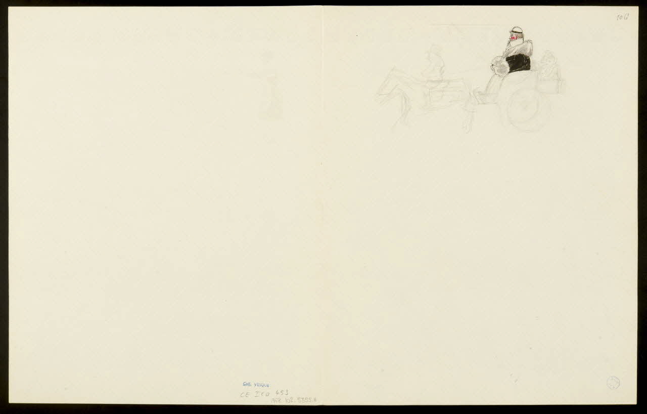 partie d'un ensemble de dessins, Femme et homme assis dans une calèche