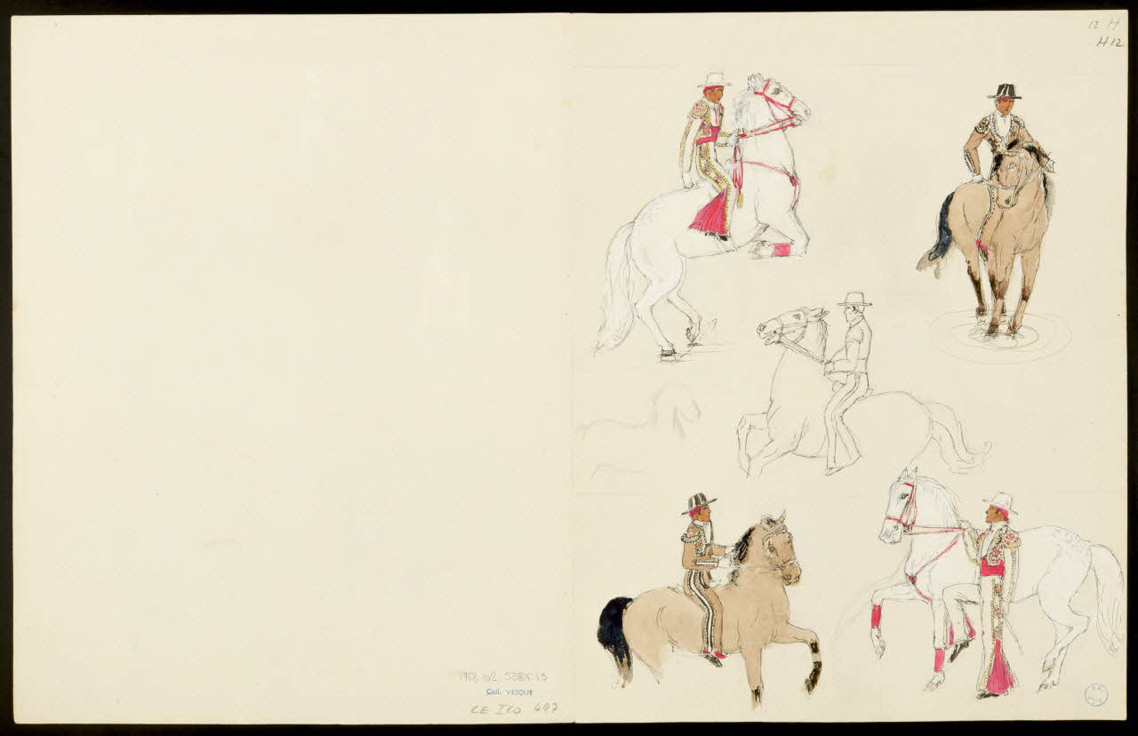 partie d'un ensemble de dessins, Numéros d'équilibristes et de cavaliers