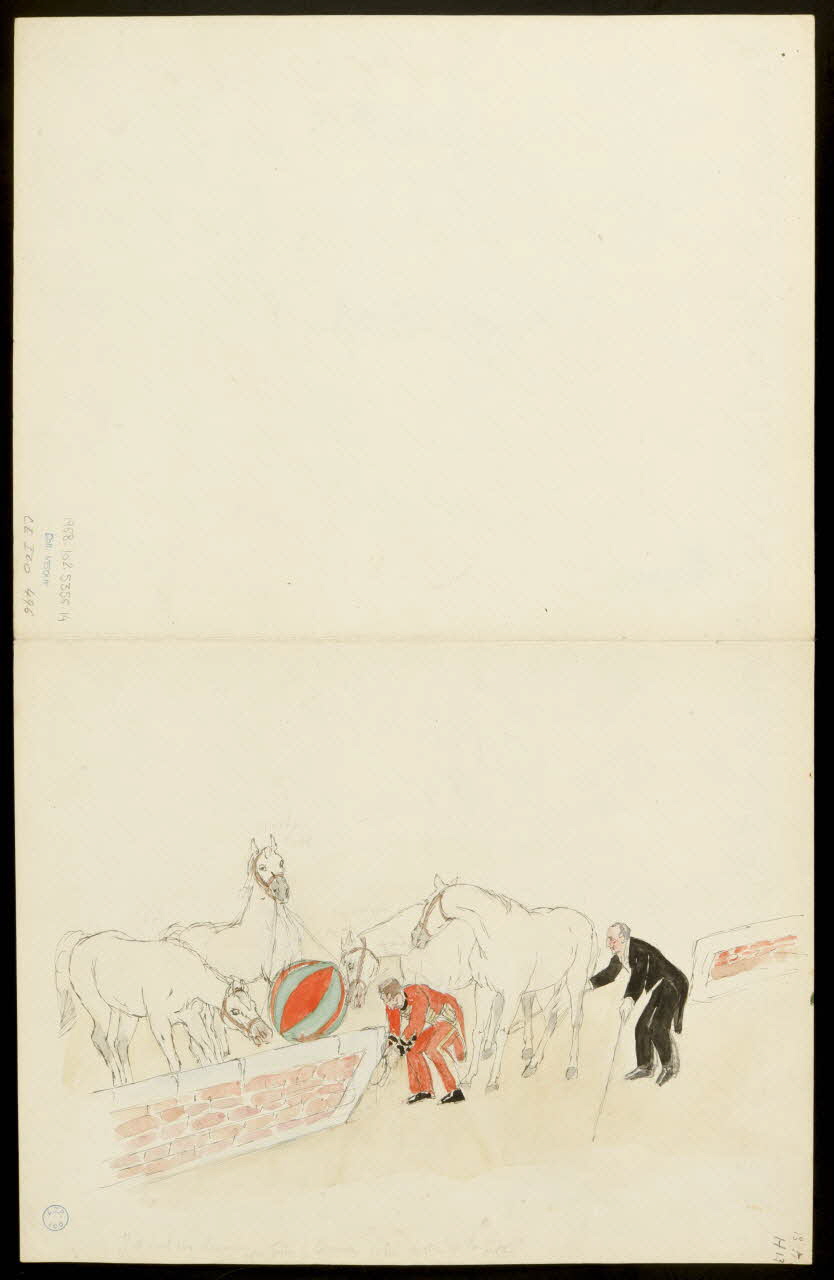 partie d'un ensemble de dessins, Numéros de clowns et de chevaux