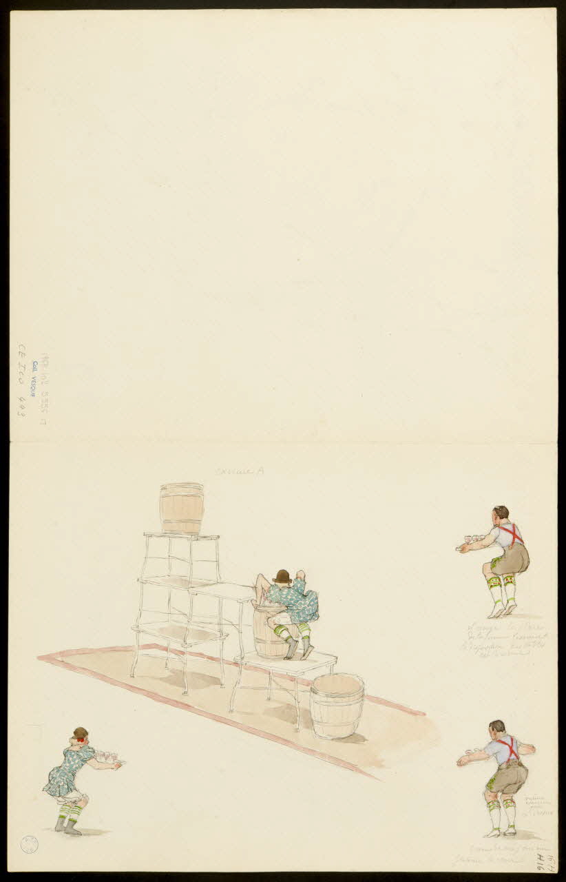- Revers : scène : homme, portant : plateau : verre, femme, portant : plateau, équilibriste, tonneau, grimper