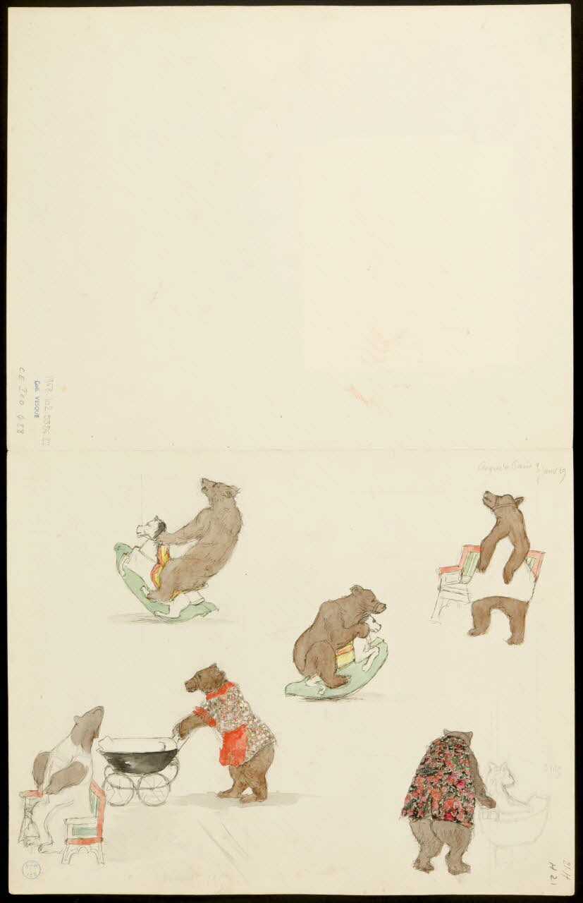 - Revers : représentation animalière : ours : anthropomorphe, cheval de bois, landeau, assis : banc