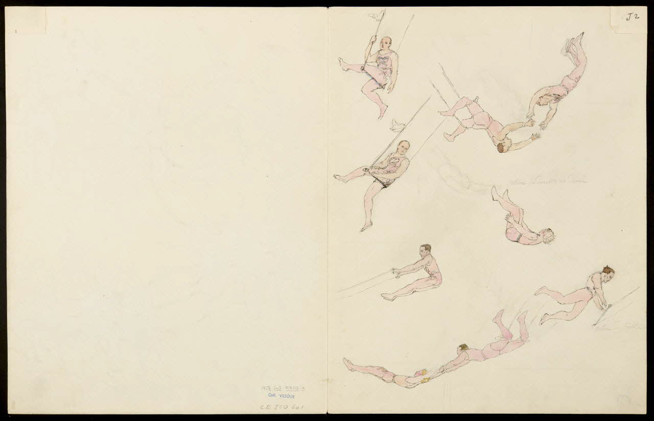 partie d'un ensemble de dessins, Acrobates avec des chevaux et trapézistes