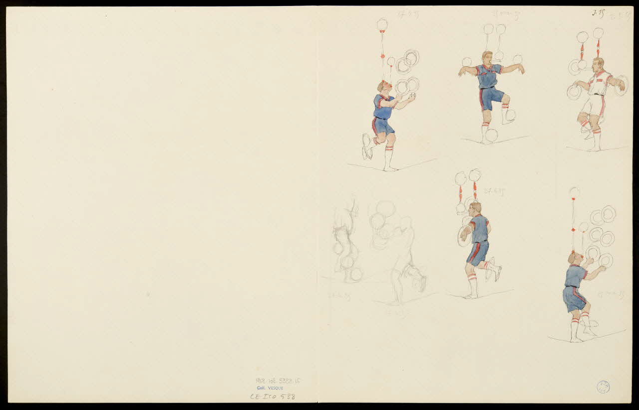 partie d'un ensemble de dessins, Trapéziste et jongleurs
