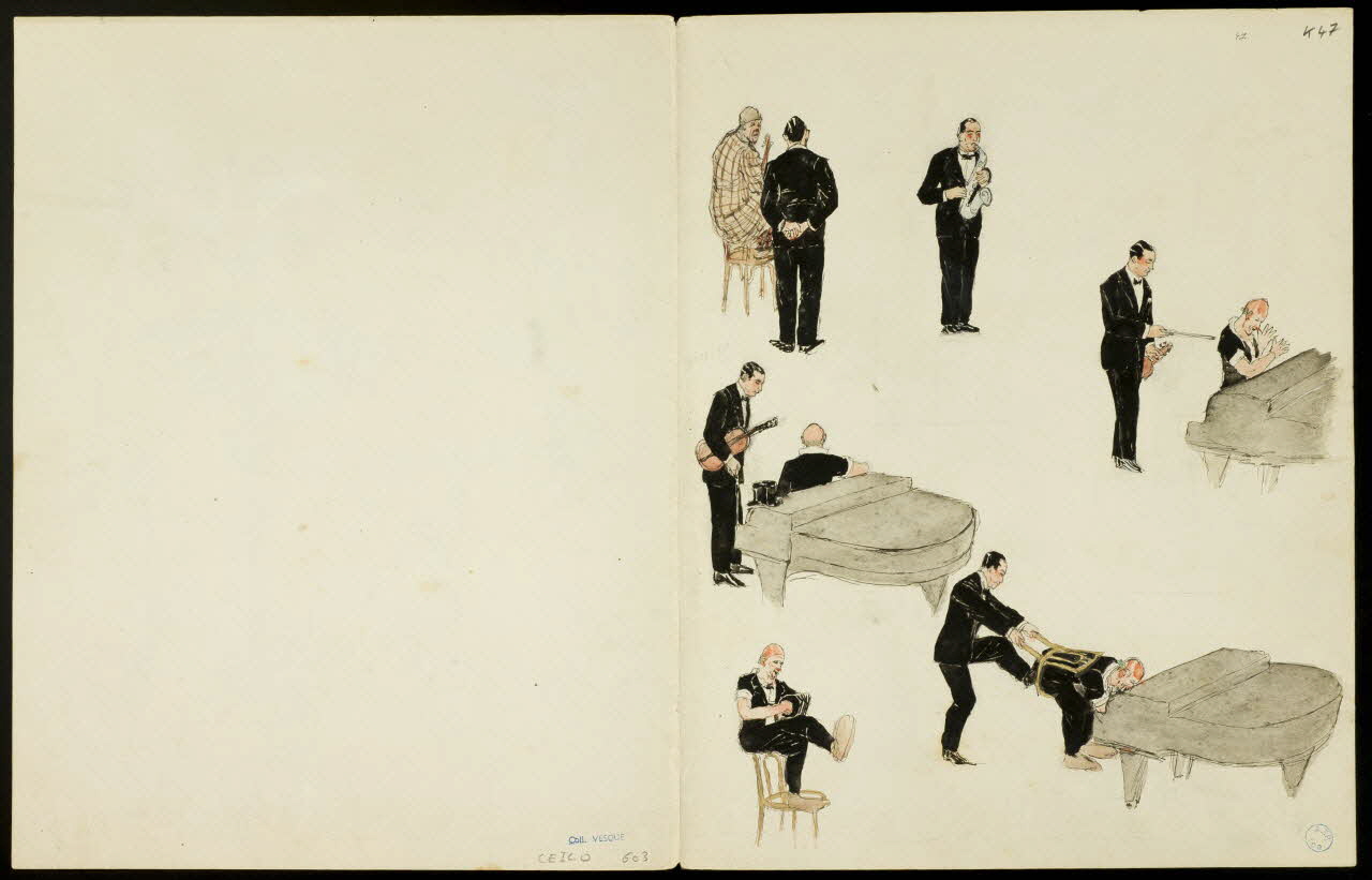 partie d'un ensemble de dessins, Numéro de clowns et numéro d'acrobates
