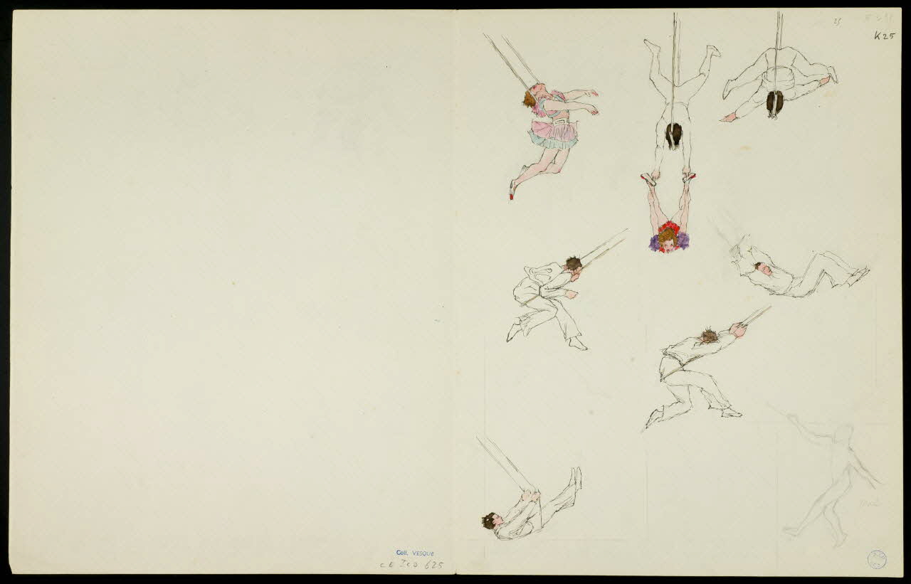 partie d'un ensemble de dessins, Numéro d'acrobate et numéro de clown