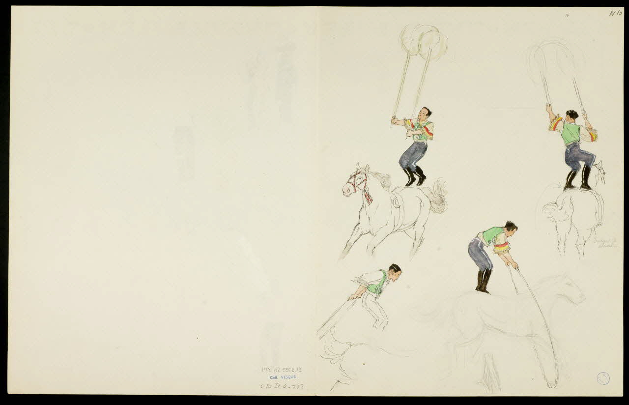 partie d'un ensemble de dessins, Numéro d'acrobates, Numéro de voltige