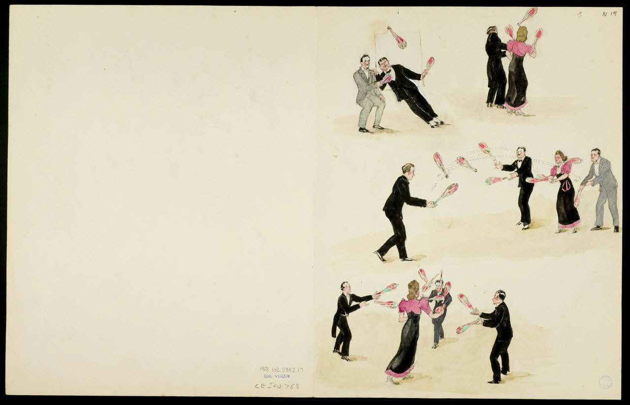 partie d'un ensemble de dessins, Numéro équestre, Jongleurs