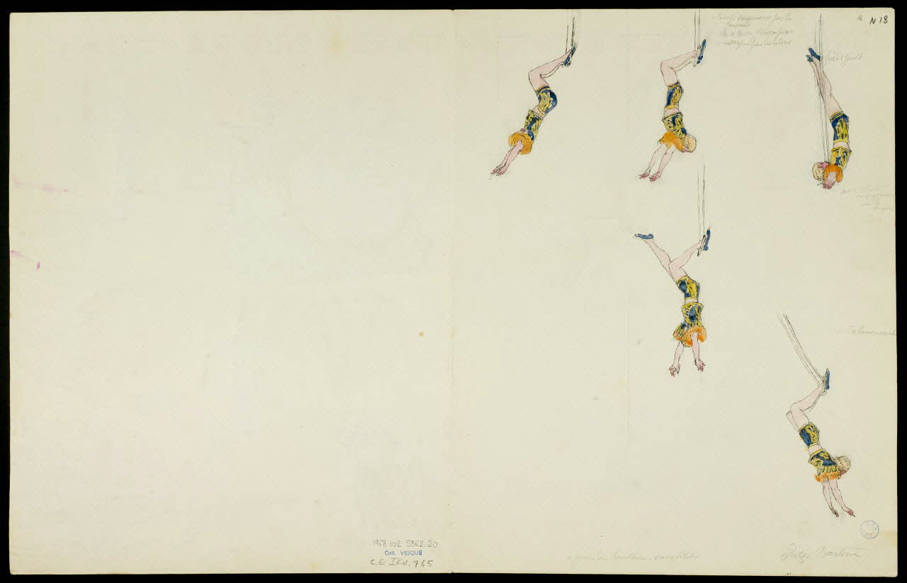 - Revers : figure : femme : acrobate, acrobatie, dans les airs, corde