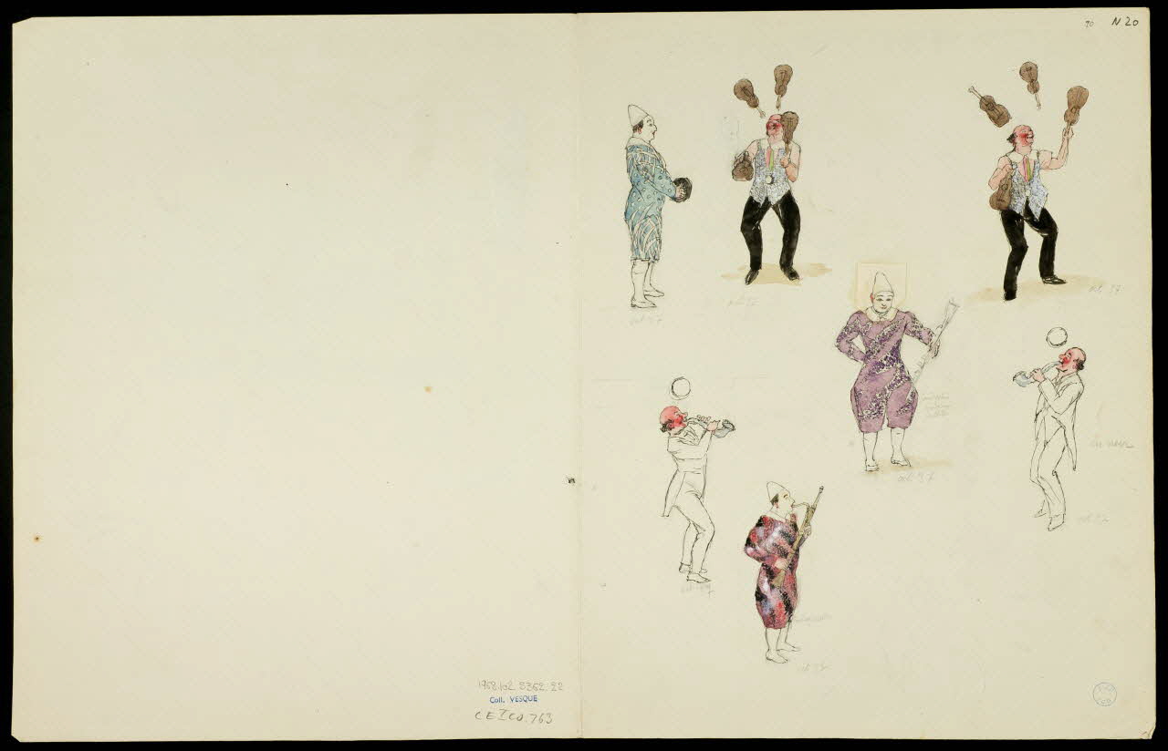 partie d'un ensemble de dessins, Numéro équestre, Clowns