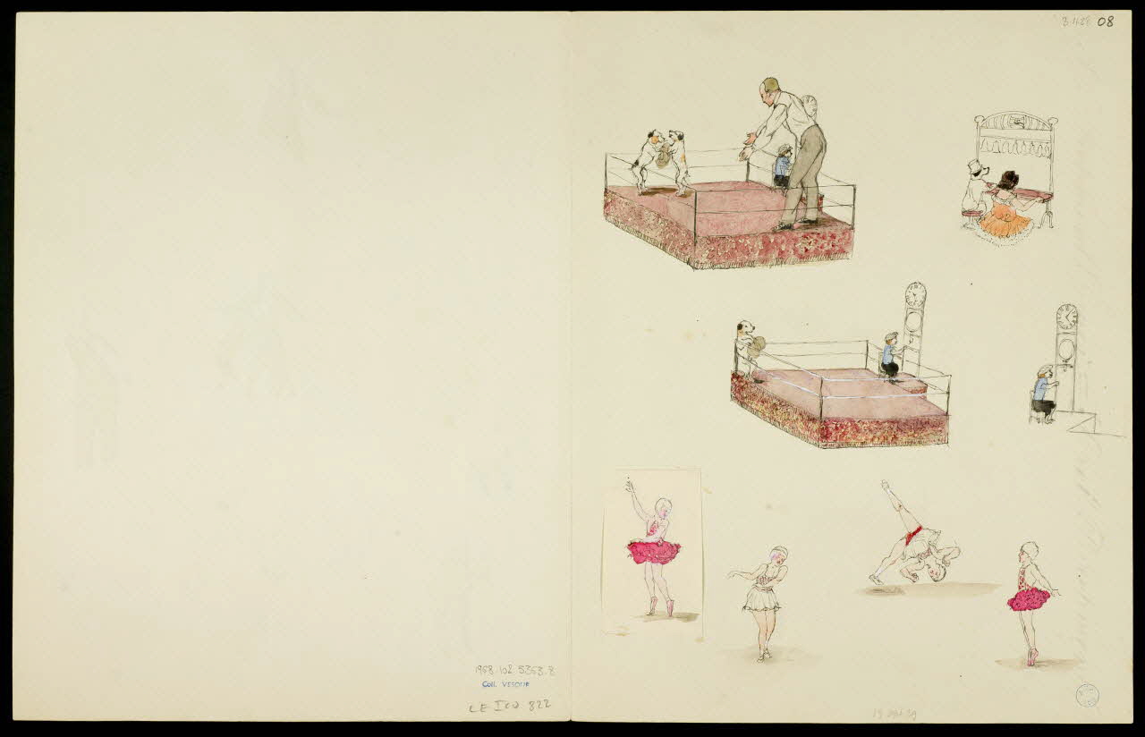 - Revers : scènes : homme : dompteur, dressage, montre d'animaux : chien, boxe, ring, jeune fille : acrobate, acrobatie