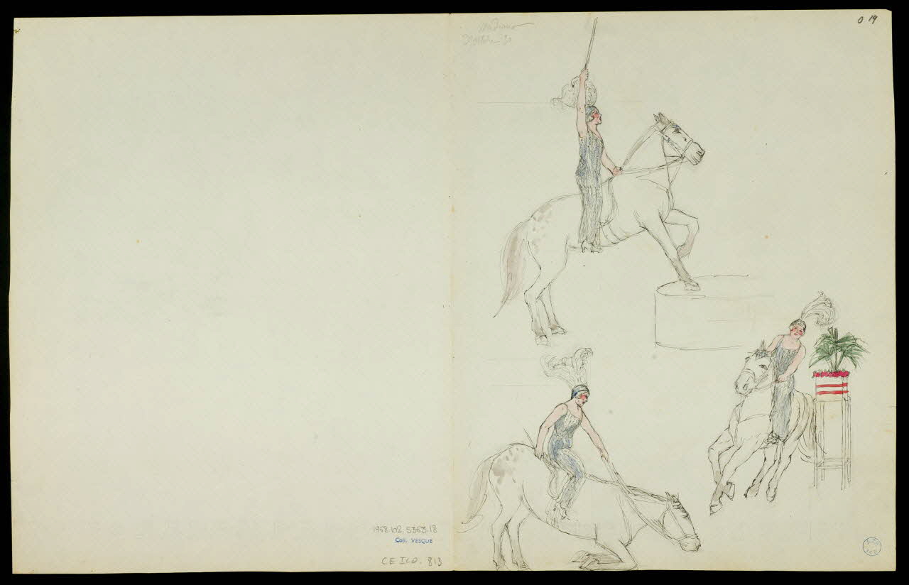 partie d'un ensemble de dessins, Acrobate au cerceau, Ecuyère